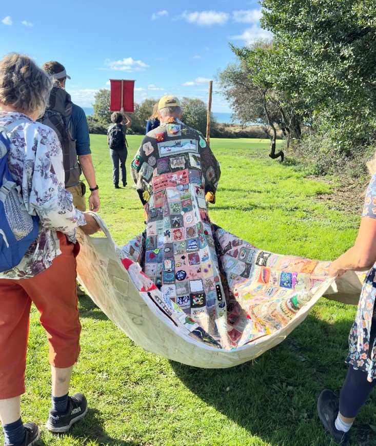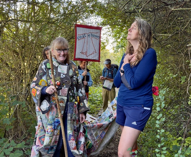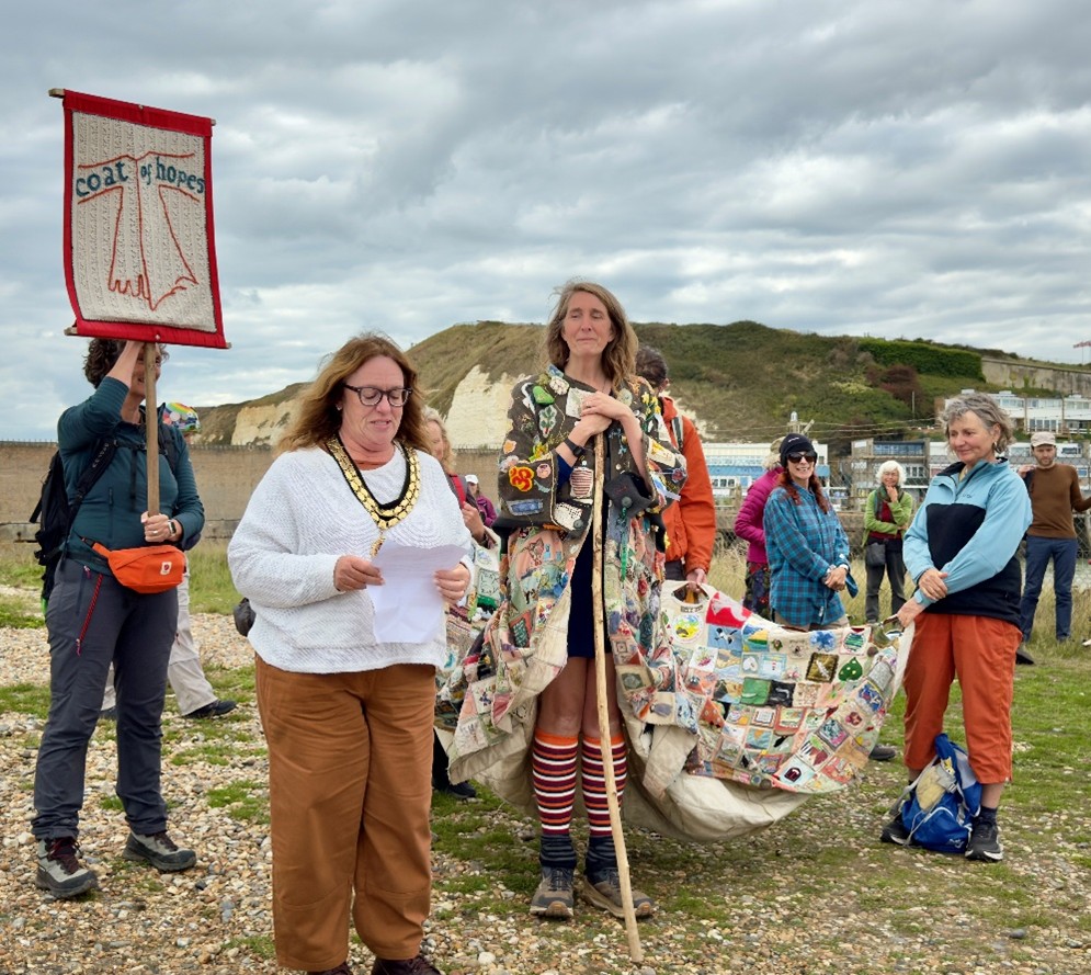 This poetic central message was echoed by Tom, one of the members of the small group walking with Barbara on this leg from Hastings (walk 28). “It’s not a work of art to be looked at and consumed. It’s about participating in this.” For him, the type of hope The Coat is carrying is a verb, something we have to do, to “dream into being”, envision and “step towards”.