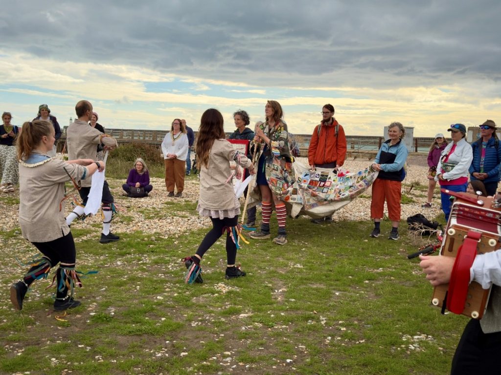 After travelling 1906 miles, The Coat of Hopes had finally arrived back in Newhaven on 21st September. It was greeted gloriously by the Ouse Valley Morris dancers.